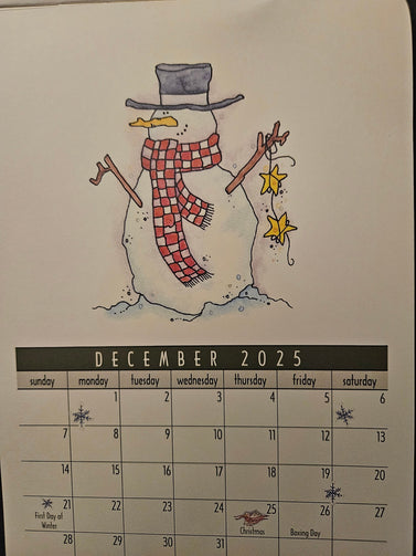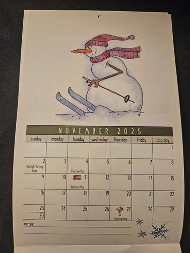 This 5 1/2" x 8 1/2" calendar is decorated with a full year of fun snowmen doing a variety seasonal activities.